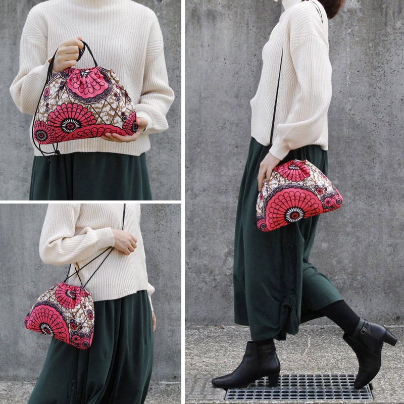 ギュッと絞るだけで簡単に開閉できる巾着型のデザイン。