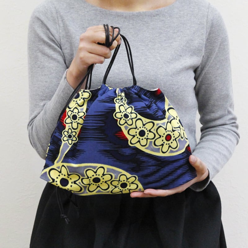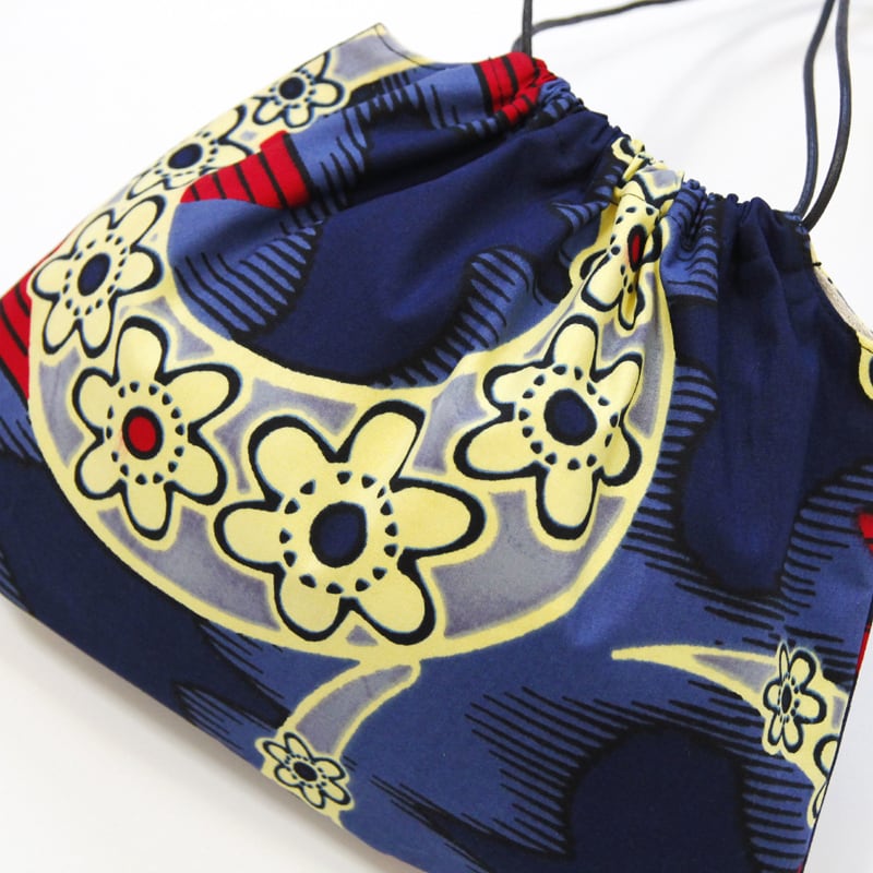 アフリカ布の巾着ショルダー( ムーンスター )斜めがけ たすき掛け インナーバッグ 鳥