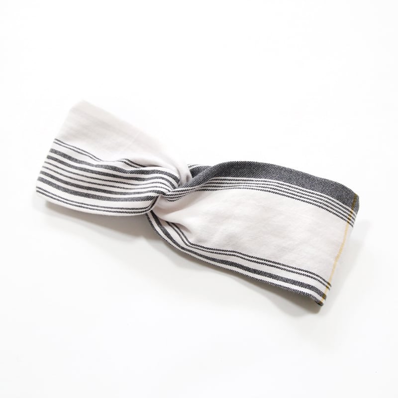 ふっくらとした幅広なつくりで、ボリューム感あるフォルムが特長のヘアターバン。しっかりと織られた厚みのある綿織物だからこそつくれる、安定感のある見た目の良さが特長です。