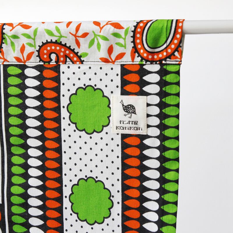鮮やかな色彩際立つカンガの暖簾です。