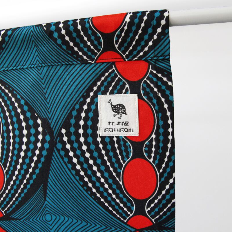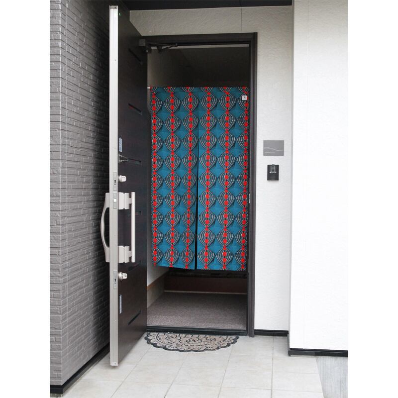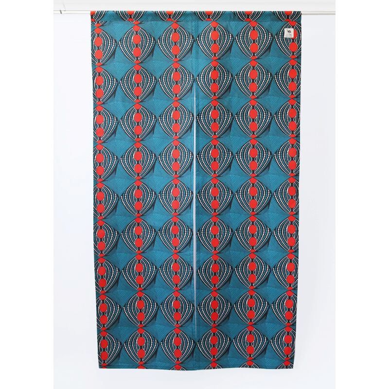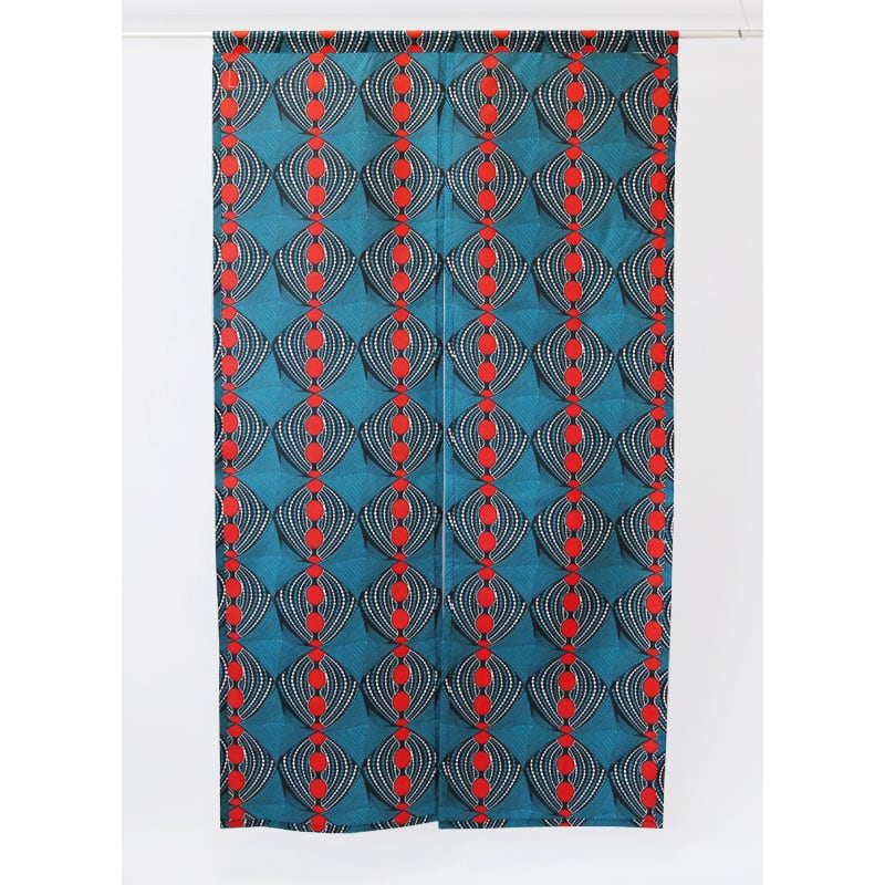 アフリカ布の暖簾(のれん)ピーコックブルー 模様替え おしゃれ ドア キッチン 綿 室内 野外 アフリカ布