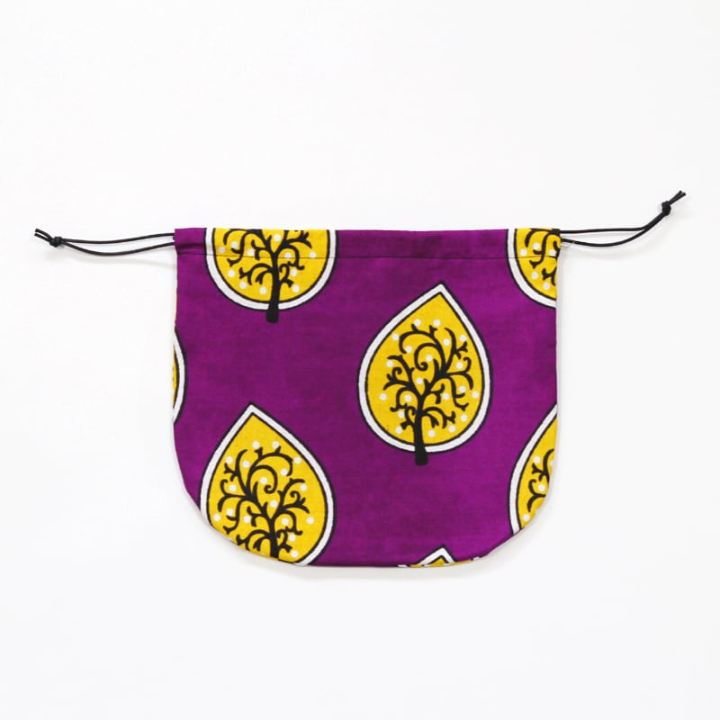 カンガの巾着袋(リーフ)インナーバッグ / 小物入れ / コップ袋 / 内袋