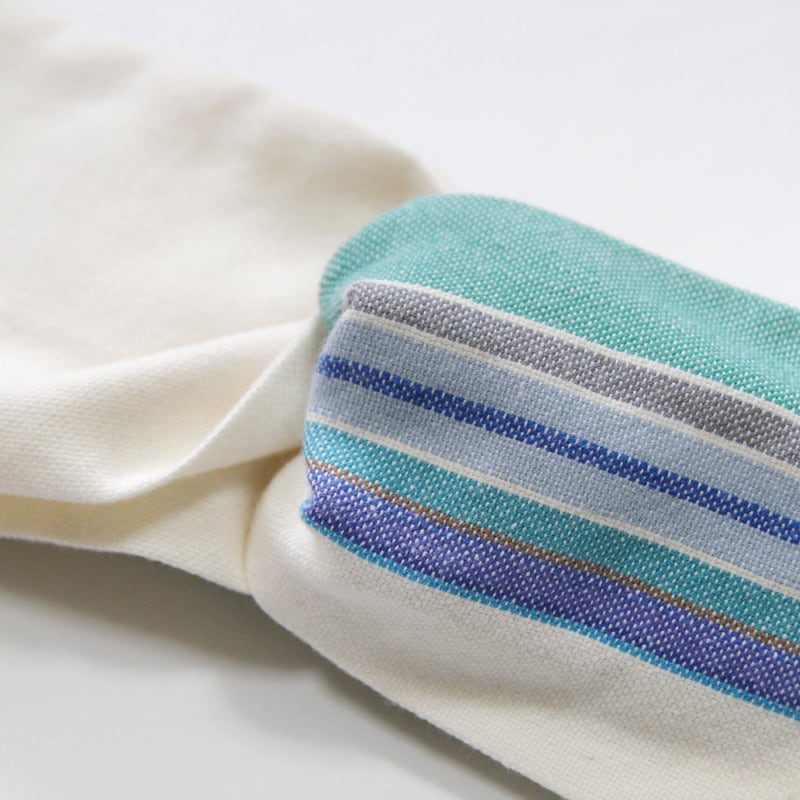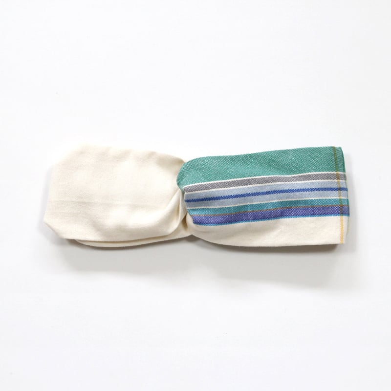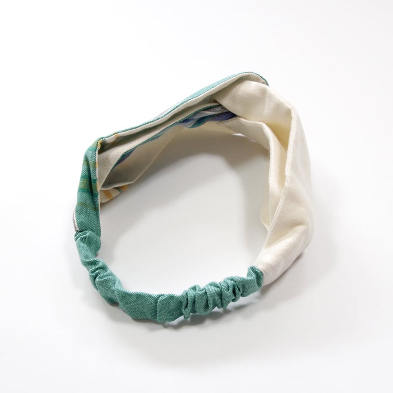 ふっくらとした幅広なつくりで、ボリューム感あるフォルムが特長のヘアターバン。しっかりと織られた厚みのある綿織物だからこそつくれる、安定感のある見た目の良さが特長です。