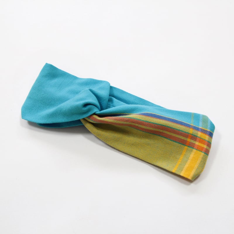 ふっくらとした幅広なつくりで、ボリューム感あるフォルムが特長のヘアターバン。しっかりと織られた厚みのある綿織物だからこそつくれる、安定感のある見た目の良さが特長です。