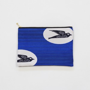 アフリカ布のフラットポーチ ( ツバメ 鳥 ) アフリカンプリント 手帳ケース パスポート 薬手帳 通帳入れ