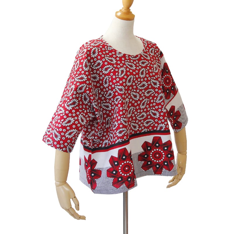 カンガのブラウス(ボックス型)アフリカ布 服 カンガ服