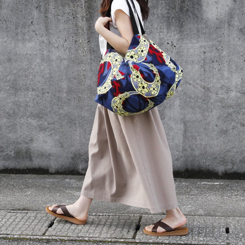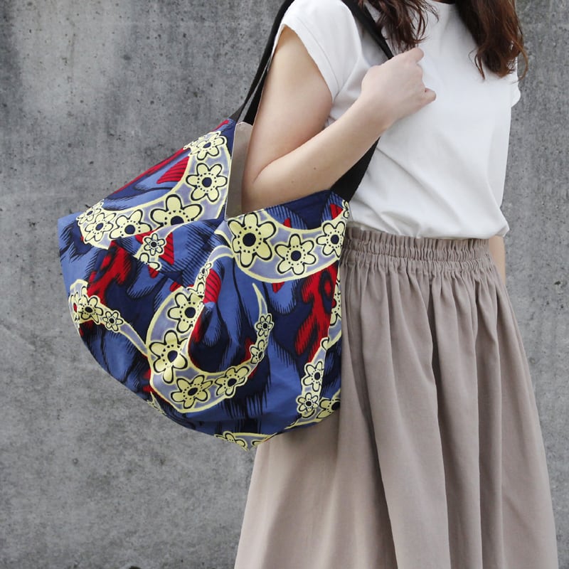 コロンとしたフォルムが可愛い アフリカ布のマルシェバック