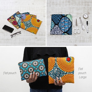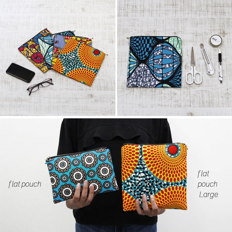 鮮やかで大容量、アフリカ布のフラットポーチです。