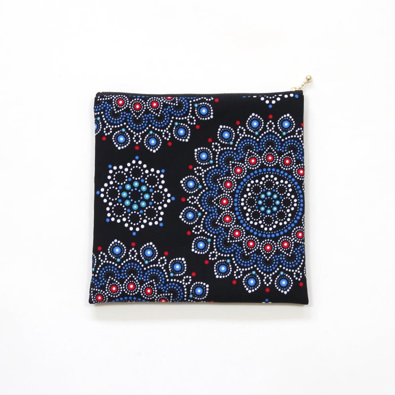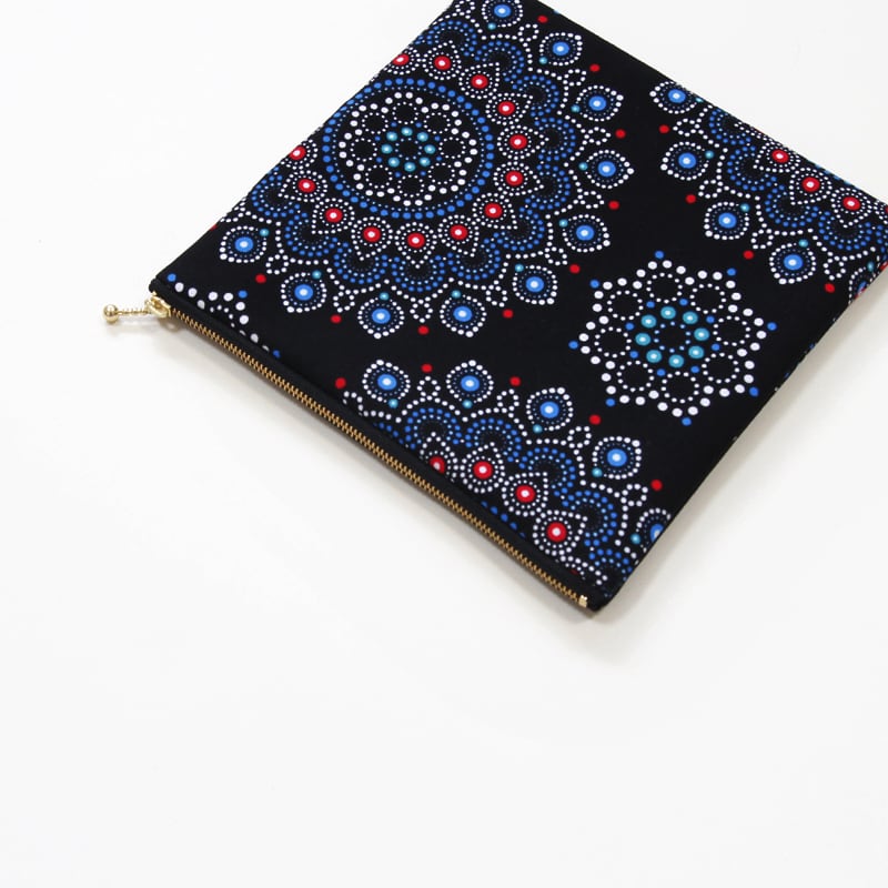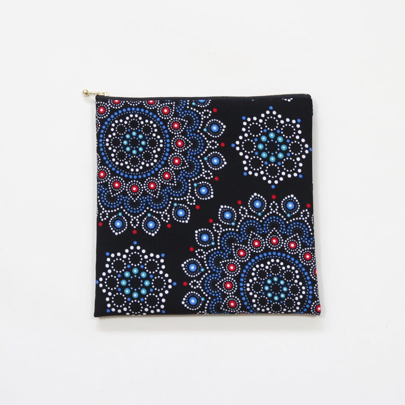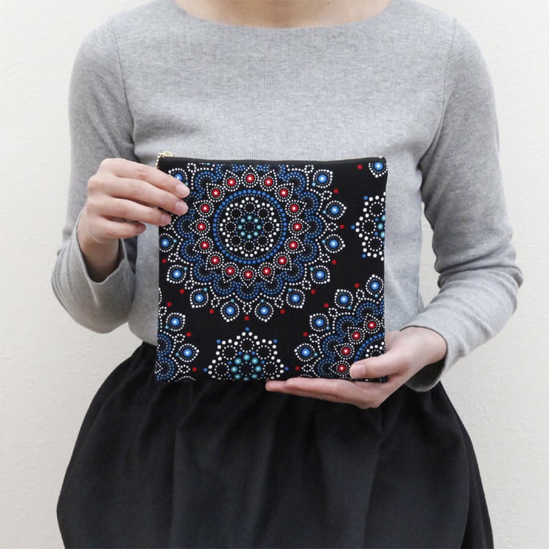 大容量・フラットポーチ( アラベスク )アフリカンプリント 化粧ポーチ マルチポーチ