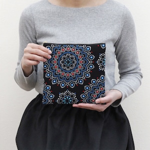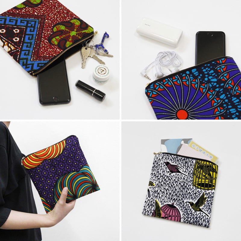 鮮やかで大容量、アフリカ布のフラットポーチです。