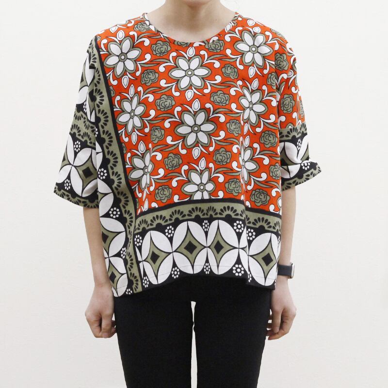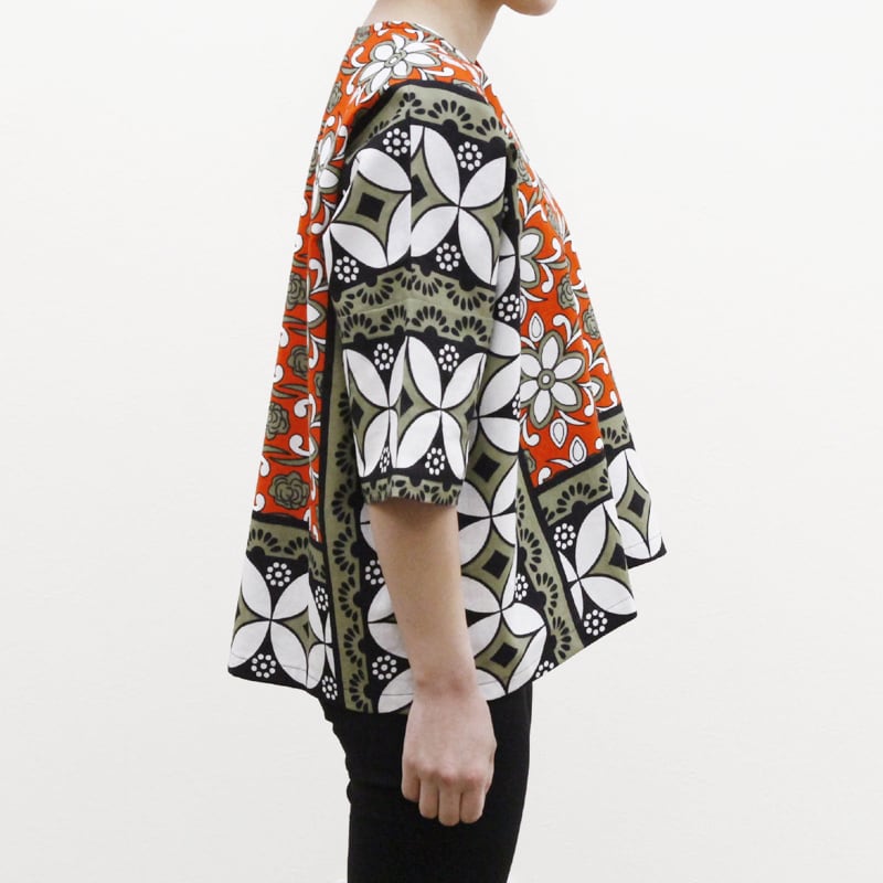 さっと袖を通すだけで、気分も上がる東アフリカの民族布「カンガ」のボックス型ブラウスです。
