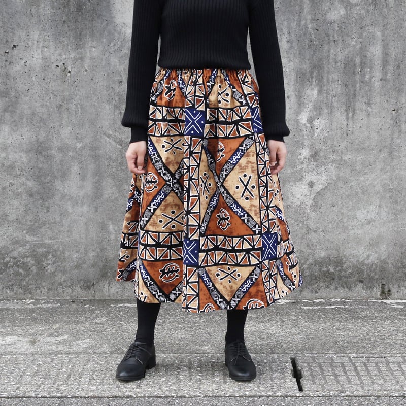アフリカ布のギャザースカート(トライバル)アフリカンプリント アフリカンファブリック