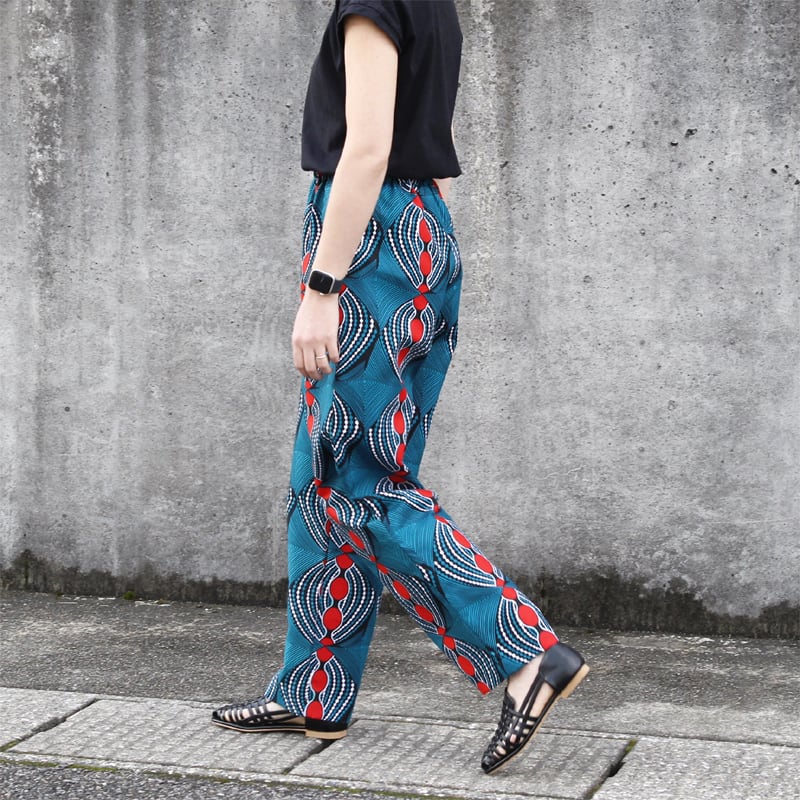 アフリカンプリントのイージーパンツ( ストレートシルエット )アフリカ布パンツ