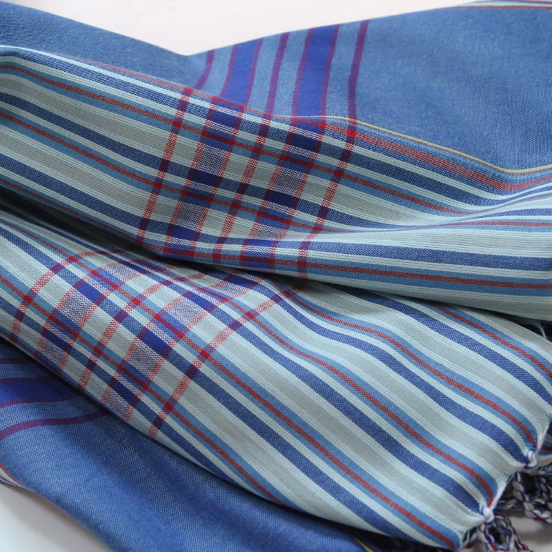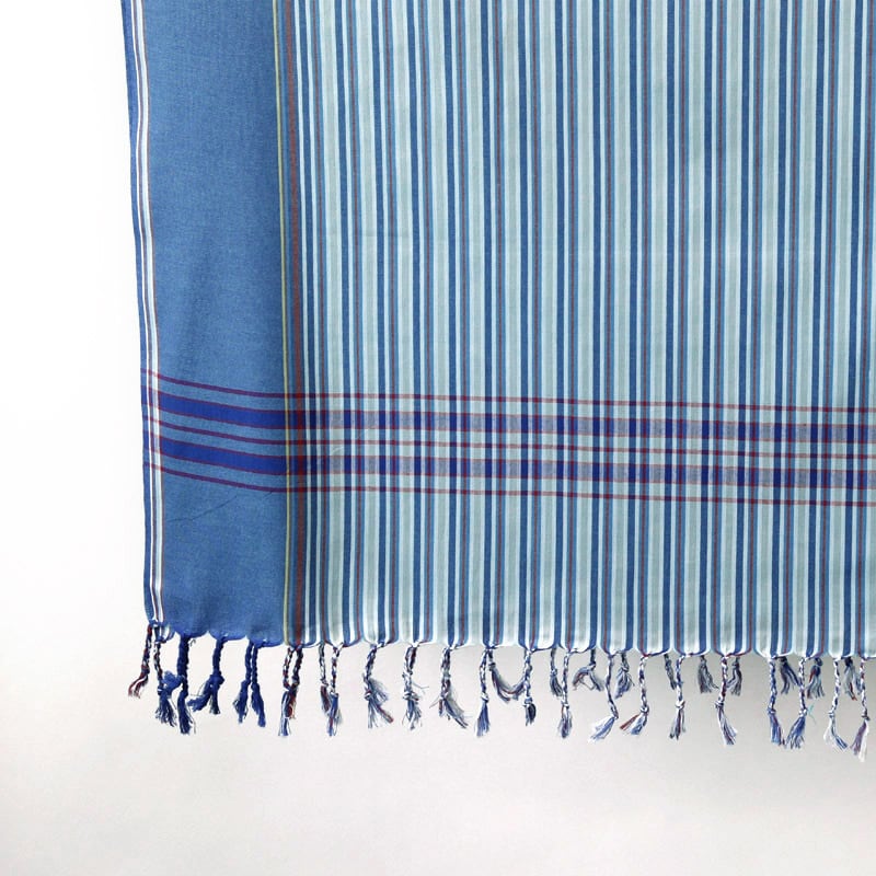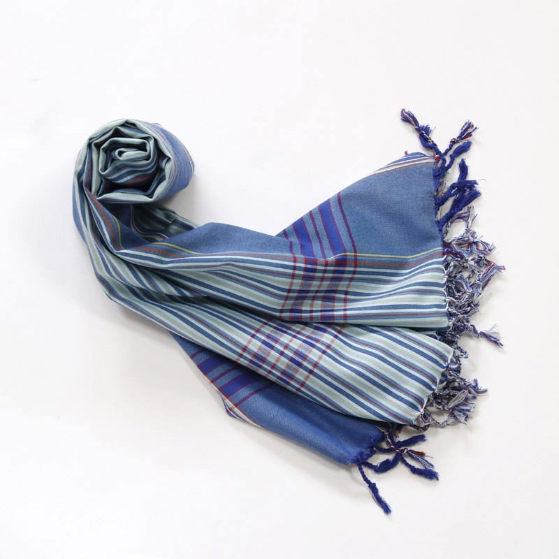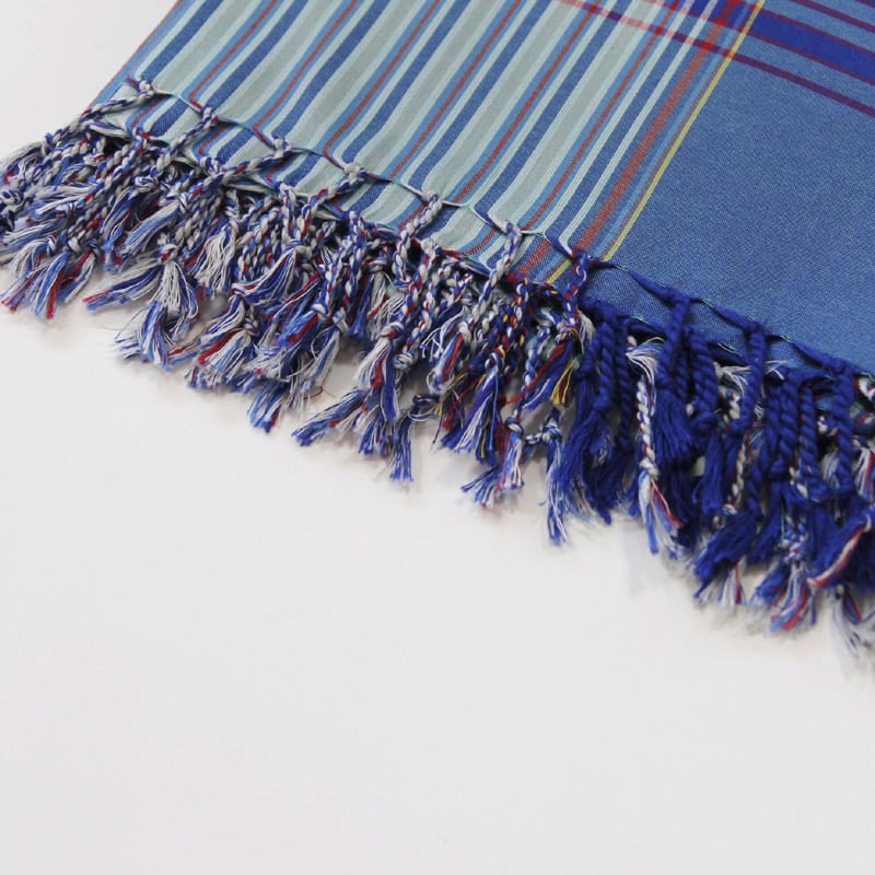 鮮やかな色合わせや単調ではないストライプ。アフリカらしいカラフルな色合わせなのに、決して派手ではなく、不思議と落ち着いた感じのする独特の美しさがキコイの魅力です。端はフリンジ処理が施され、可愛らしい雰囲気に。