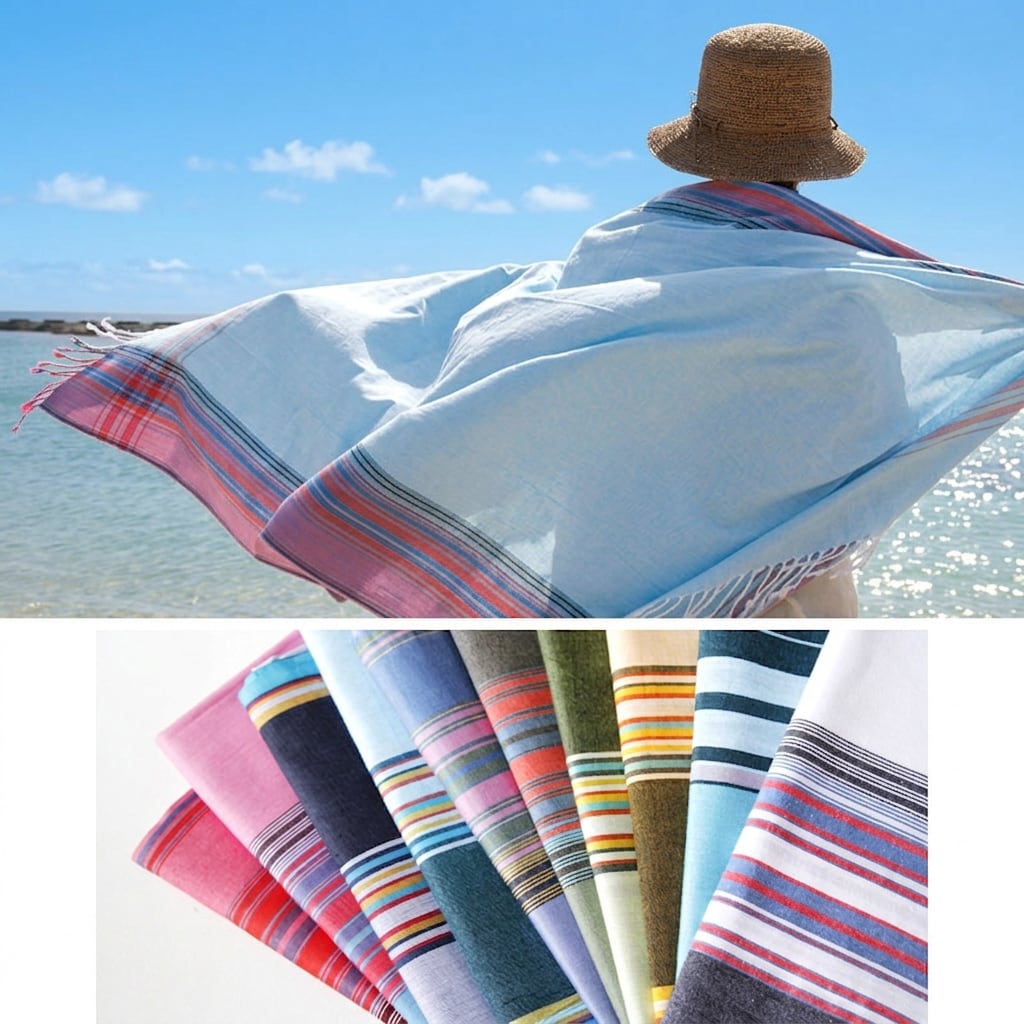 春夏用のショールやストール、ビーチなどの日よけとして、ファッション性だけでなくさまざまなシーンで実用的に活躍してくれます。