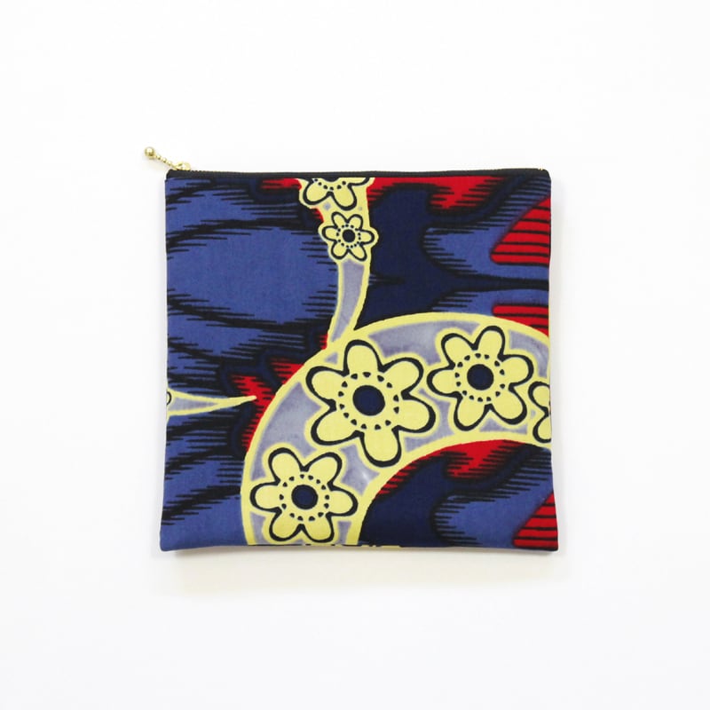 鮮やかで大容量、アフリカ布のフラットポーチです。