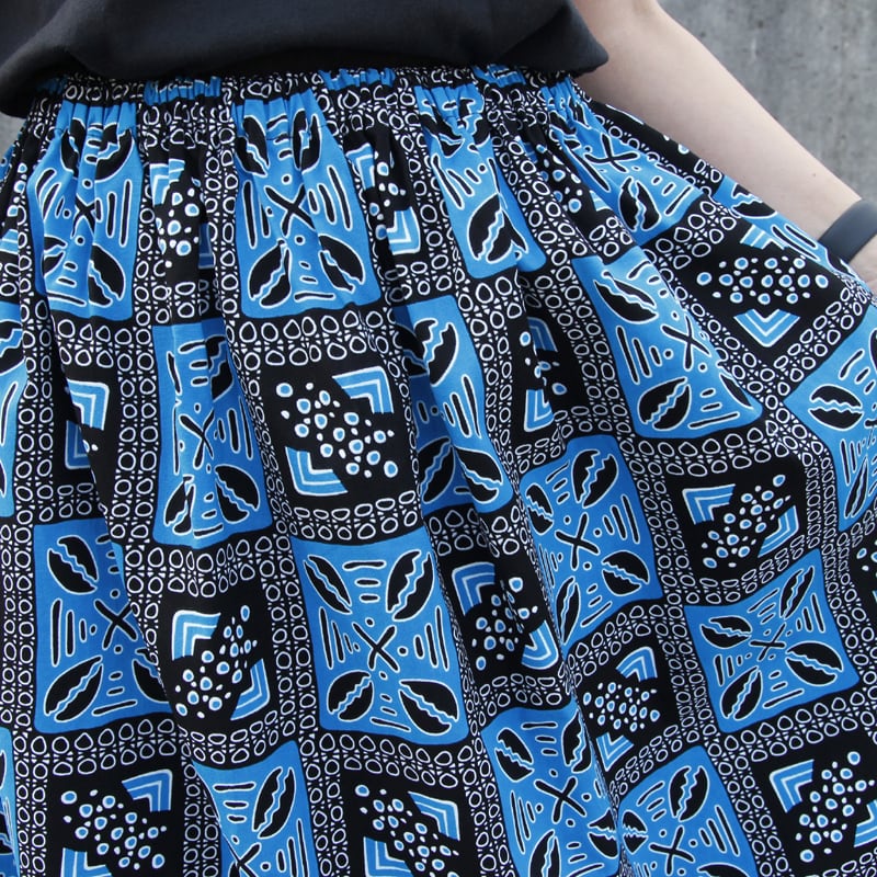 【受注制作】アフリカ布のギャザースカート(トライバル)アフリカンプリント アフリカンファブリック