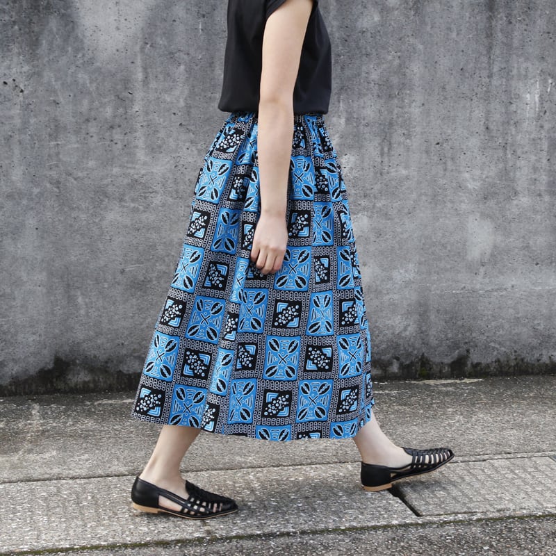 鮮やかな色彩とシルエットで魅せる、存在感のあるアフリカ布のスカート。コーディネートの主役となって、ロングシーズン活躍してくれるアイテムです。