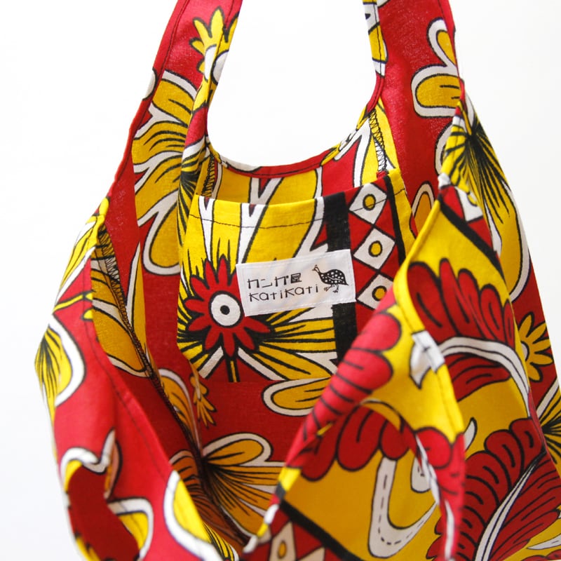 アフリカ布のレジバッグ(小)内ポケット付き エコバッグ アフリカンプリント