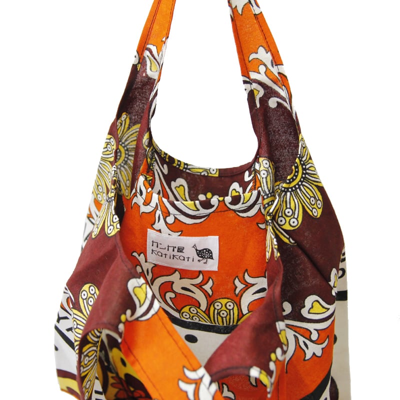 アフリカ布のレジバッグ(小)内ポケット付き エコバッグ アフリカンプリント