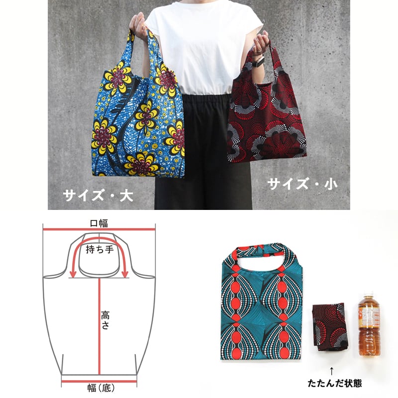 アフリカ布のレジバッグ(小)内ポケット付き エコバッグ アフリカンプリント
