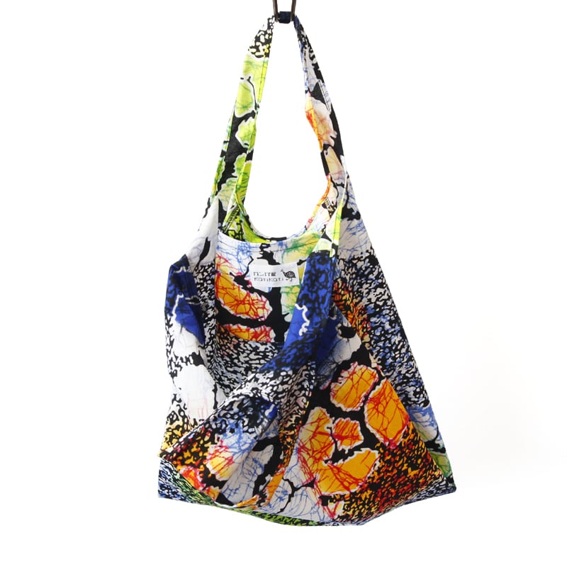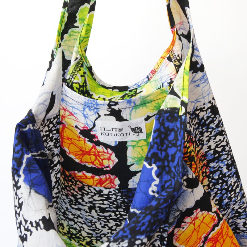アフリカ布のレジバッグ(大)内ポケット付き エコバッグ アフリカンプリント