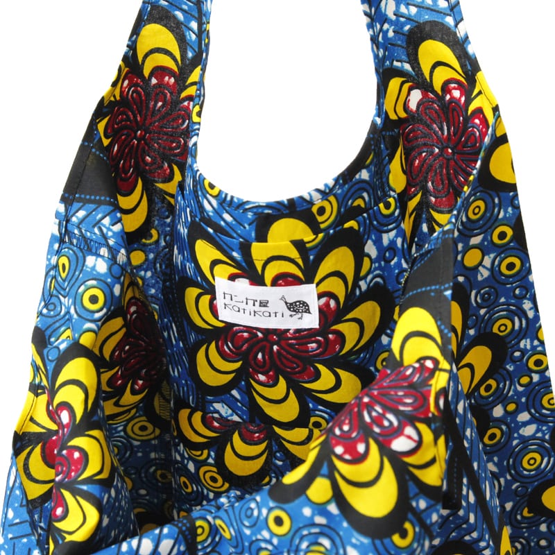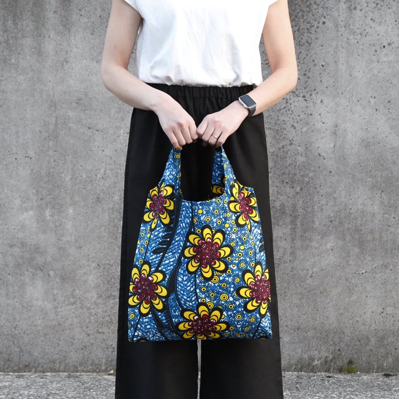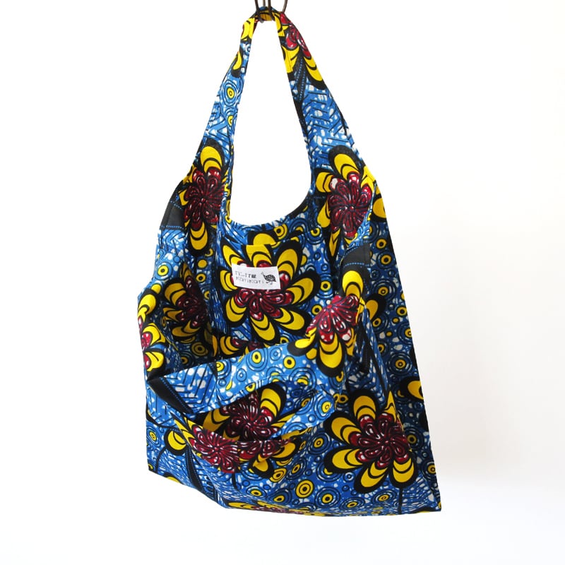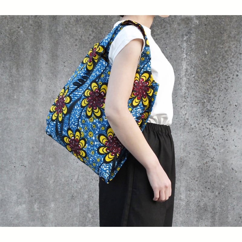 アフリカ布のレジバッグ(大)内ポケット付き エコバッグ アフリカンプリント