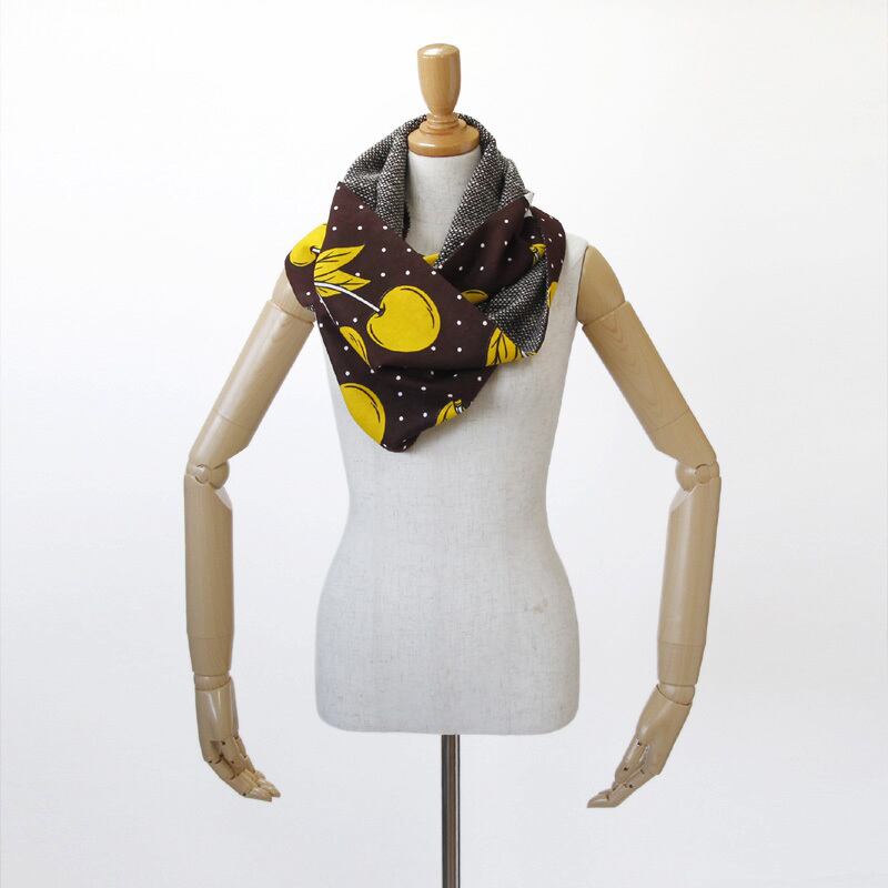 フルーツ柄のロングスヌード(チェリー)ネックウォーマー 秋 冬 ギフト