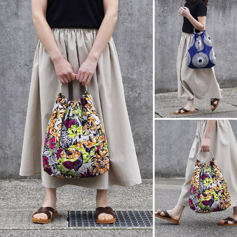 アフリカ布のリングハンドルバッグ(カンガバッグ)大人可愛い お洒落