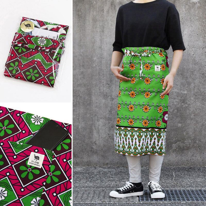 ソムリエ・エプロン(カンガ)ユニセックス おしりが隠れる カフェ ロング キャンプ アウトドア