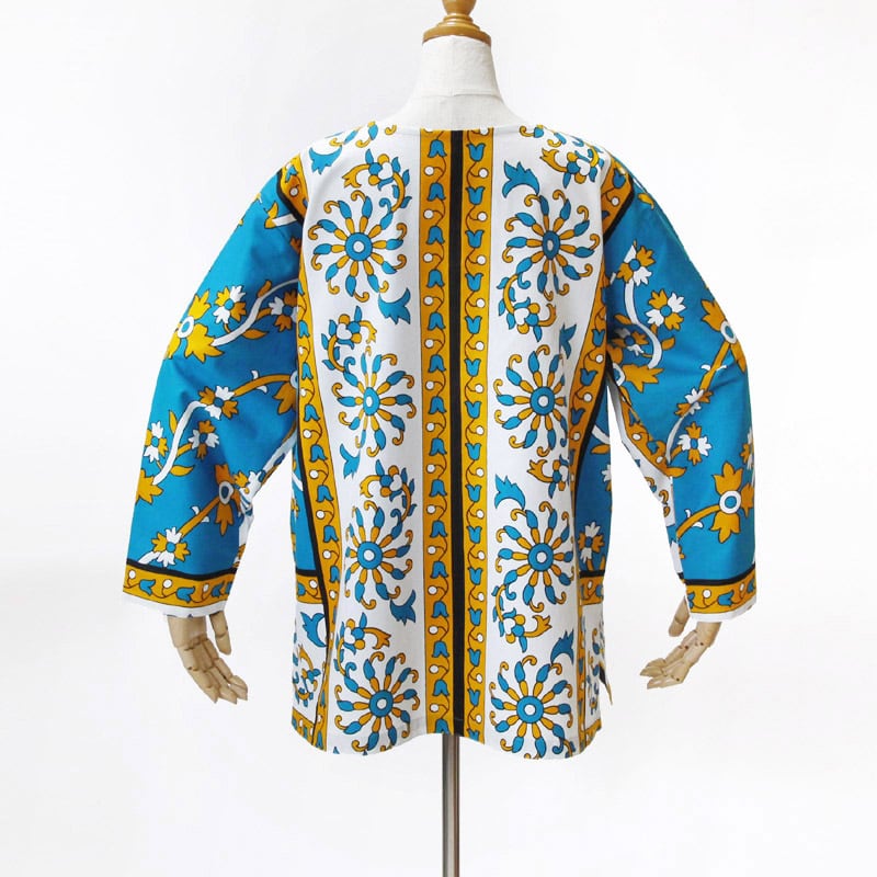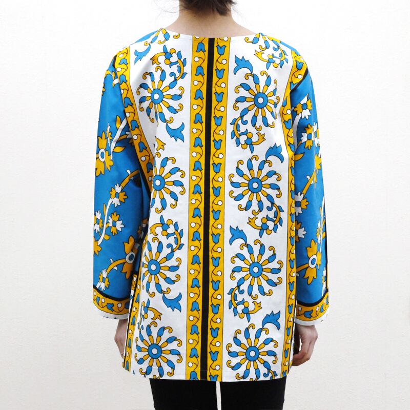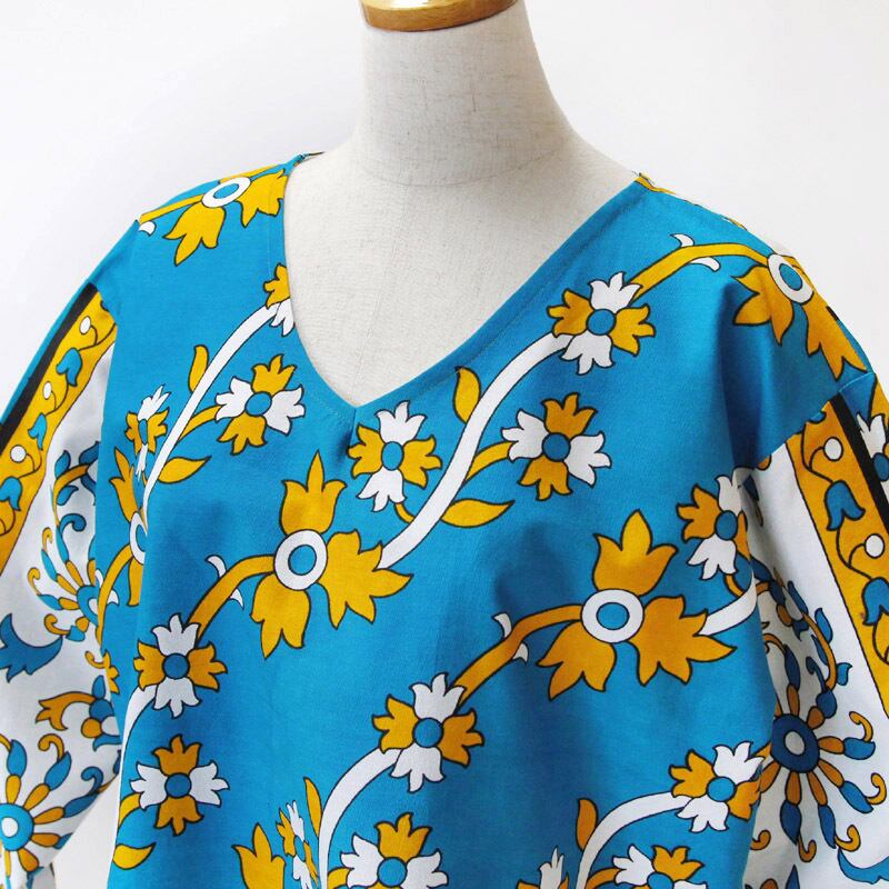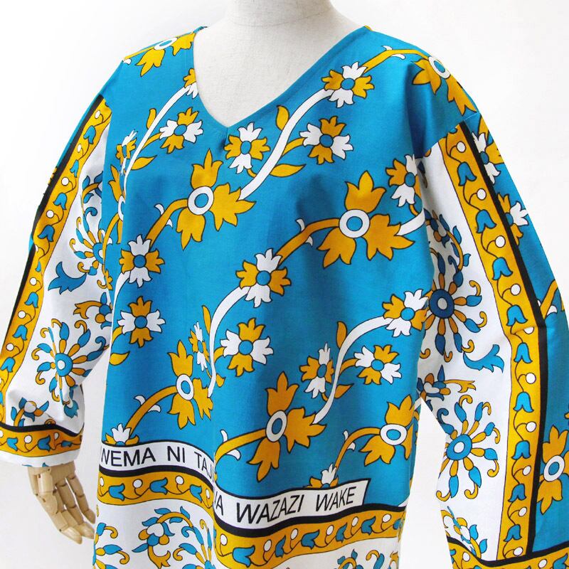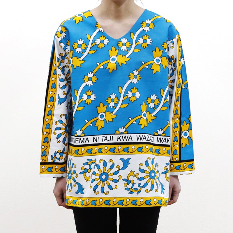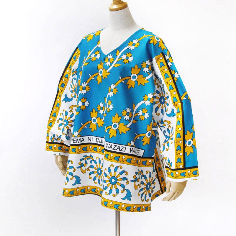 カンガのVネックブラウス( ボタニカル柄 )アフリカ布 服 カンガ服