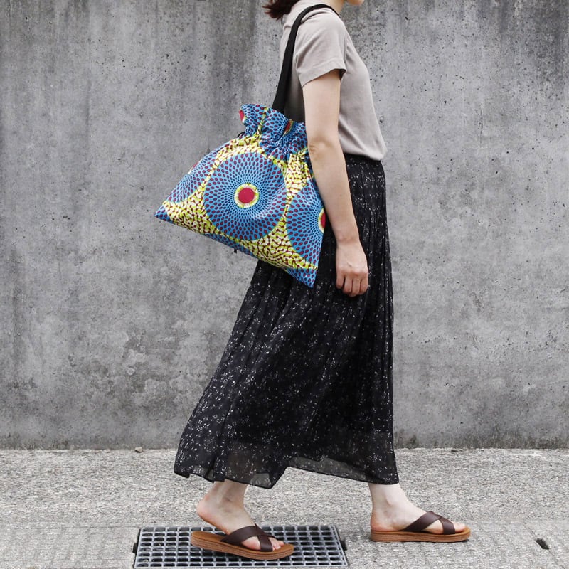 アフリカ布の巾着バッグ(カンガバッグ)トート 大きめ