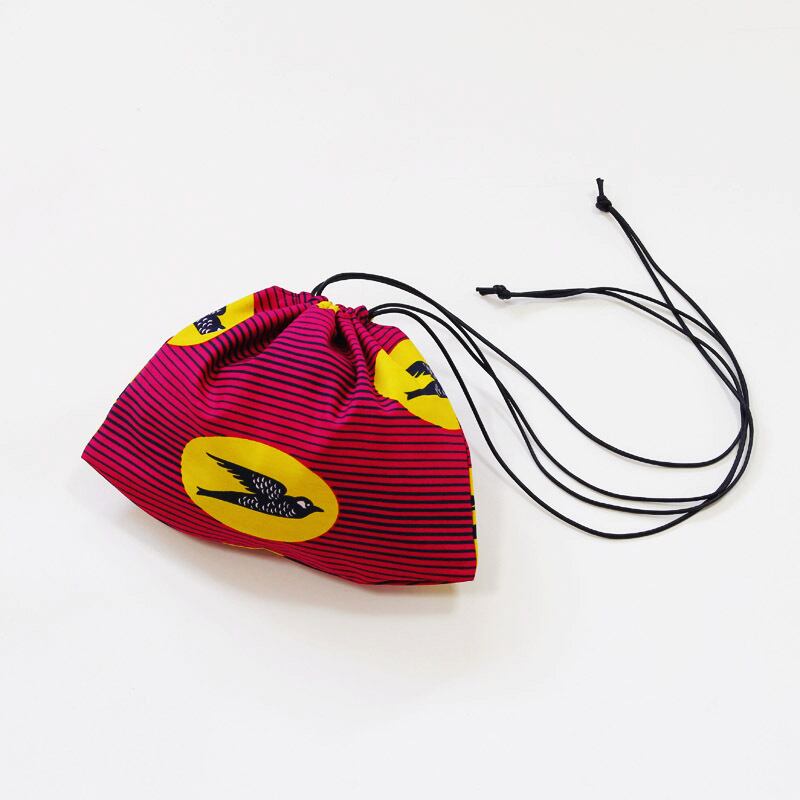 ツバメ柄の巾着ショルダー(アフリカ布 鳥)斜めがけ たすき掛け インナーバッグ