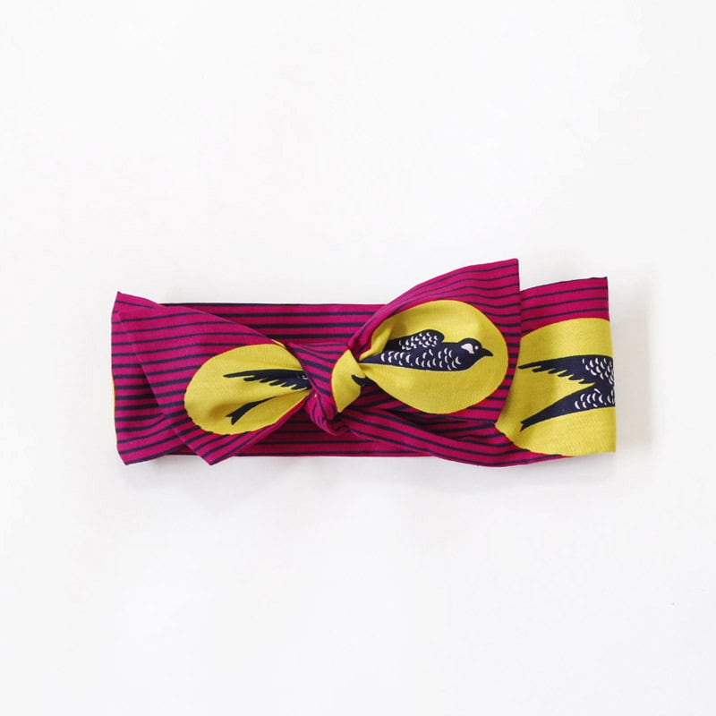 ツバメ模様のリボンターバン|幅広ボリューム / アフリカ布 / アレンジ 鳥