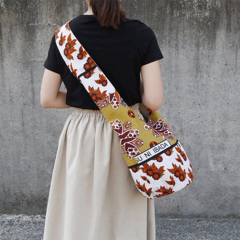 アフリカ布のショルダーバッグ(カンガ)大きめ 斜めがけ たすき掛け ヨガ ピラティス