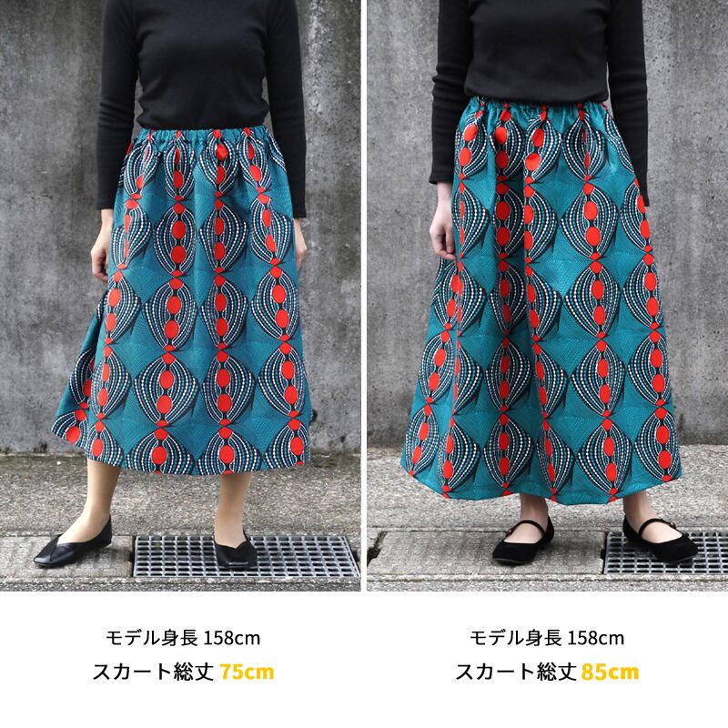 ご希望のサイズに合わせて制作できるアフリカ布のスカート。