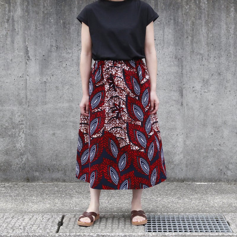 鮮やかな色彩とシルエットで魅せる、存在感のあるアフリカ布のスカート。コーディネートの主役となって、ロングシーズン活躍してくれるアイテムです。
