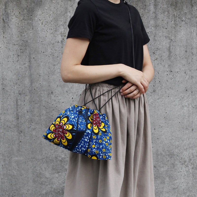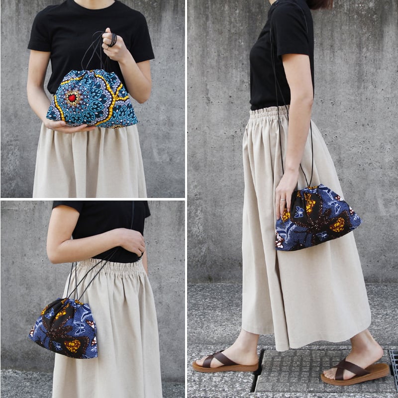 アフリカ布の巾着ショルダー(アフリカンプリント)斜めがけ たすき掛け インナーバッグ