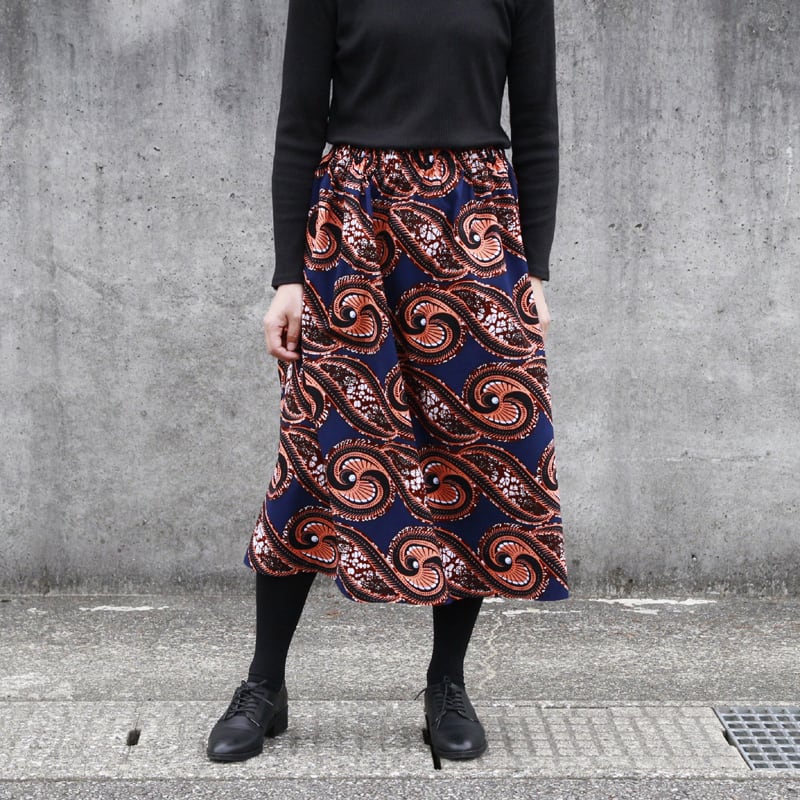 アフリカ布のギャザースカート( ネイビー × ペーシュ )アフリカンプリント アフリカンファブリック