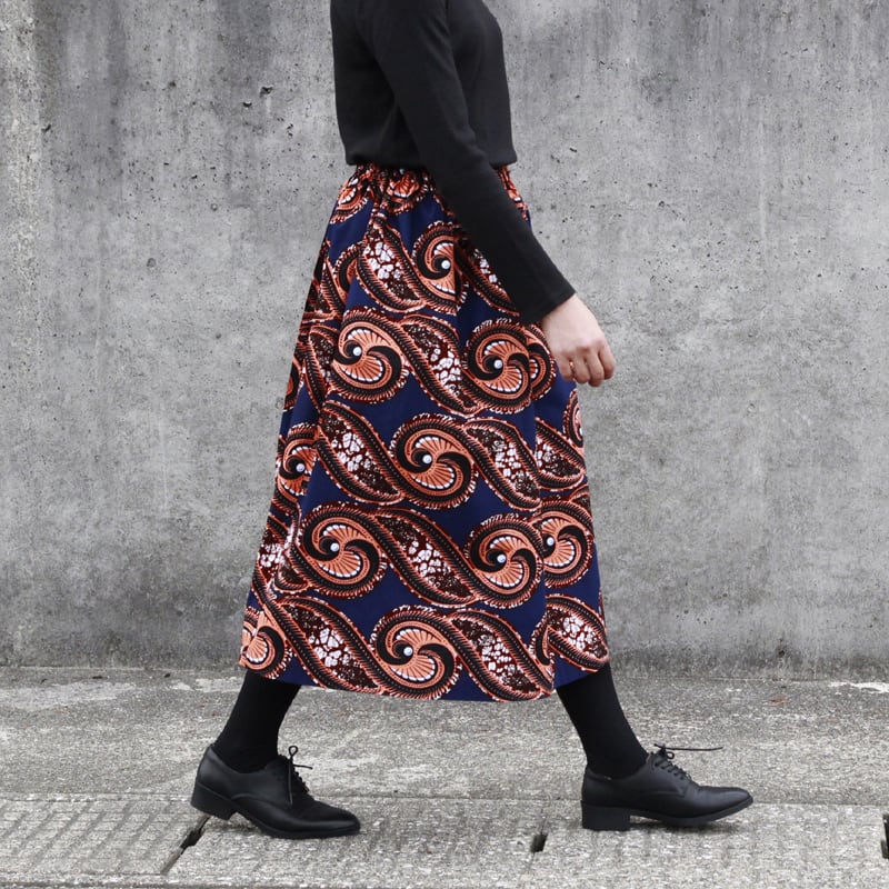 コーディネートがパッと華やぐ、アフリカ布のスカート