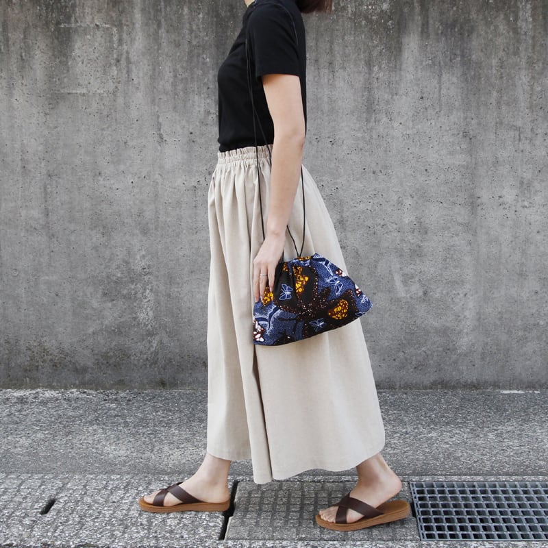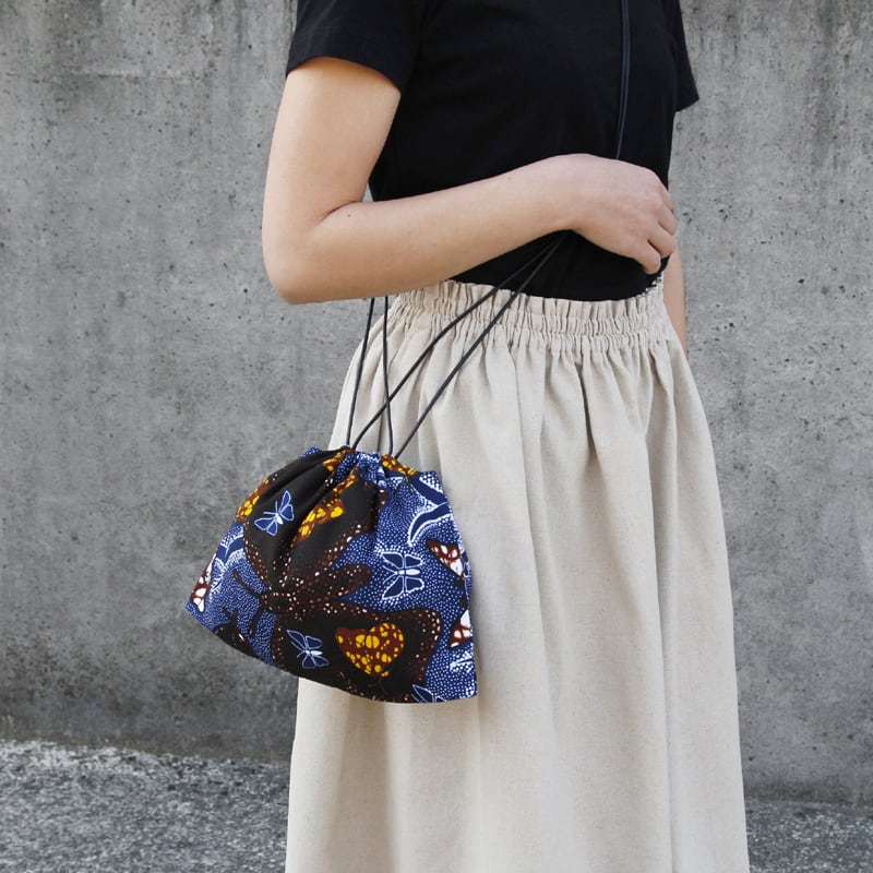 アフリカ布の巾着ショルダー( バタフライ・蝶 )斜めがけ たすき掛け インナーバッグ