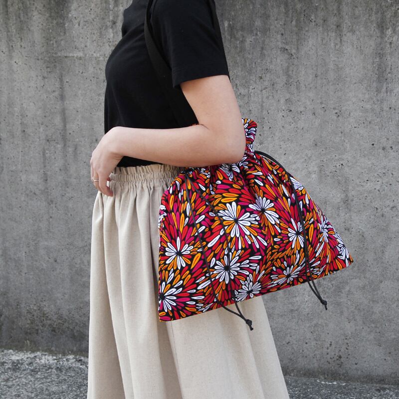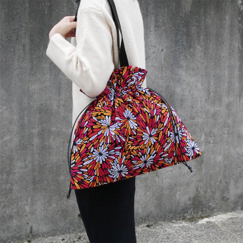 きゅっと縛って可愛く持てる、アフリカ布の巾着バッグ