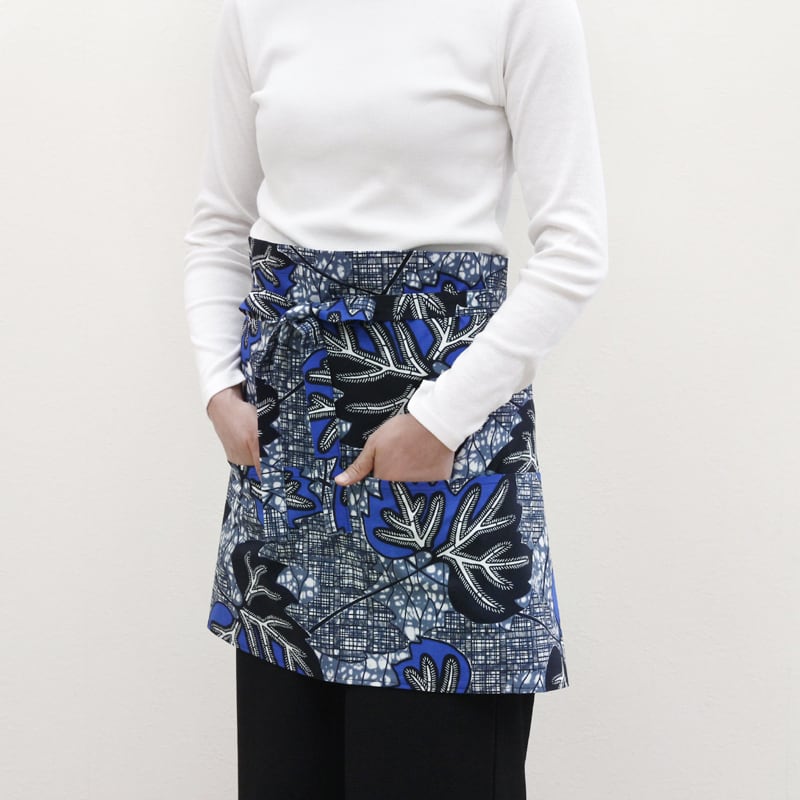 アフリカ布のカフェエプロン(リーフ)アフリカンプリント 母の日 ギフト